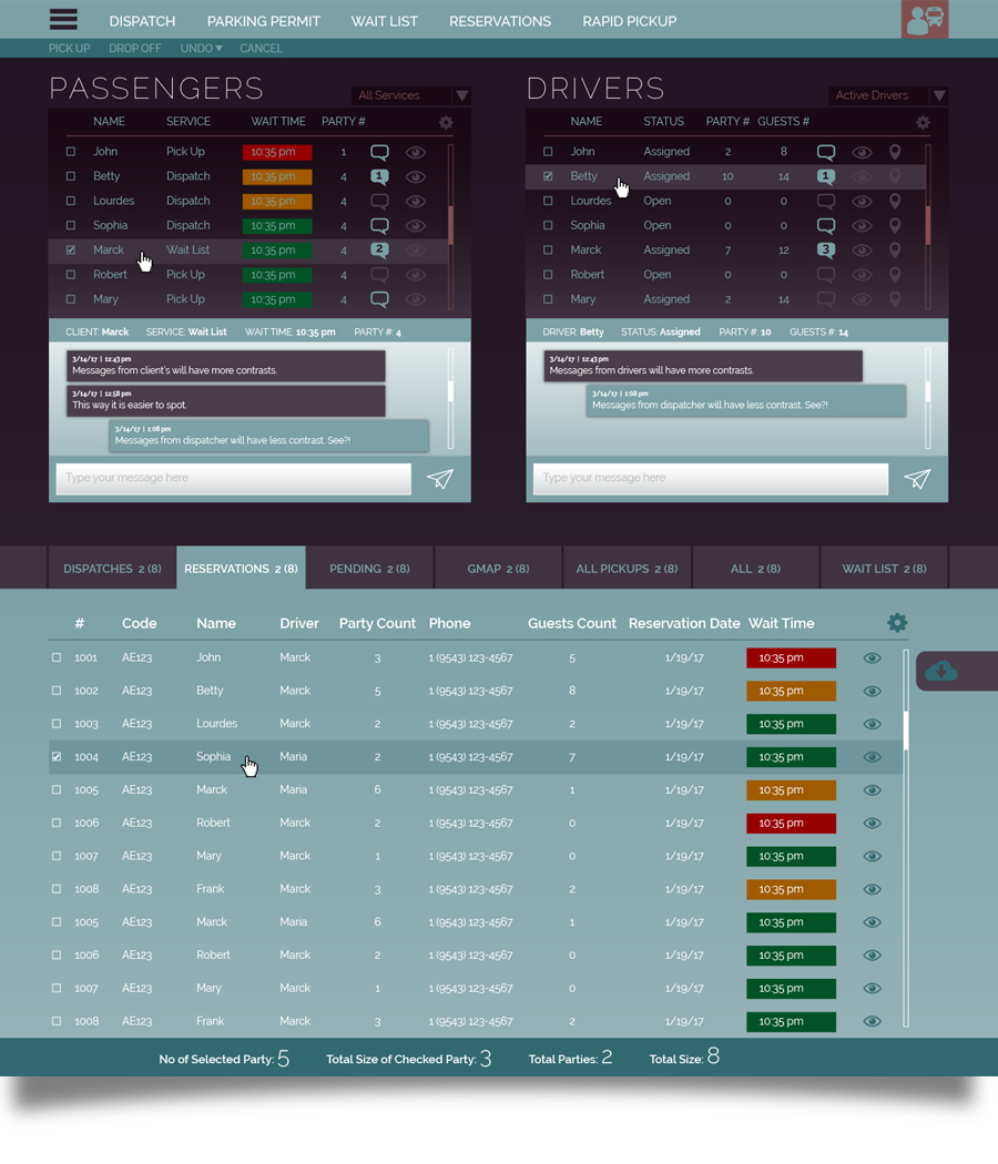 After several sketches, and due to the short deadline, I jumped into creating a prototype to present the client. He was very visual and was quick making decisions. So I new I had to present a prototype that eliminated any chances of being shut down because the client lacked vision or patience to have the final product. My approached worked. The client stared quietly to the prototype. Like he was looking for something to critique. Of course he did, and I’m glad he did. Because the prototype were so complete, it helped him to provide insights about what exactly he wanted the dispatcher to focus in order to be more efficient. I took his input to the heart and redesigned the prototype, this time I took it to the next level.