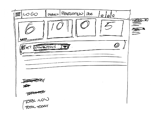 The application was mainly used by a dispatcher at the hotel. By role-playing with the application, certain inefficiencies started to become evident. So I quickly started to hand sketch a new dashboard that I felt had a better architecture which allowed the dispatcher to focus on the most urgent information that needed to be addressed.
