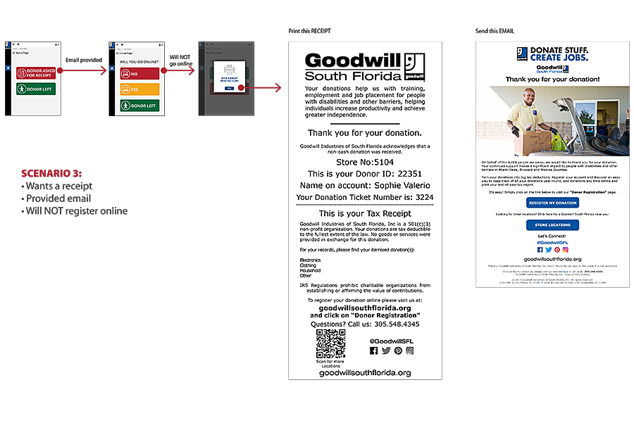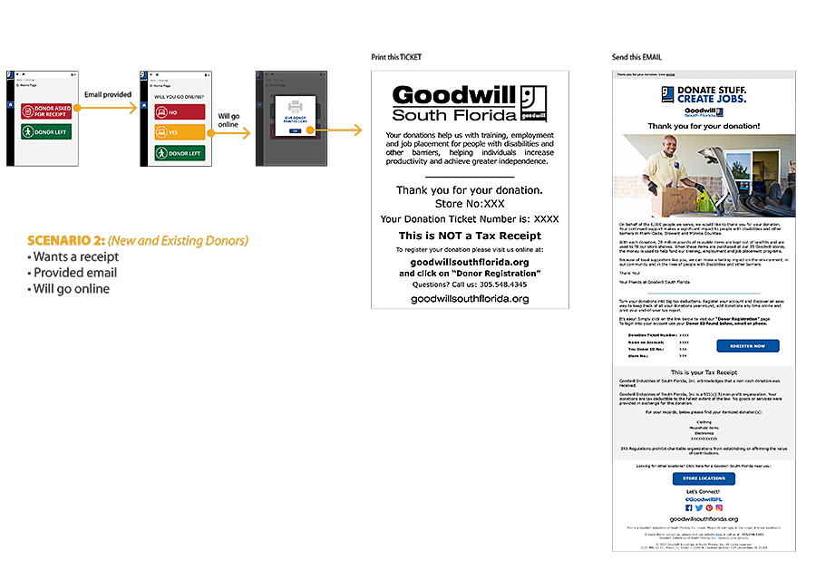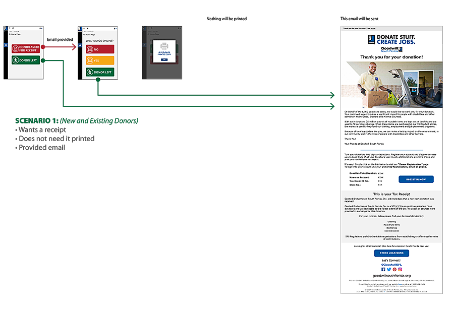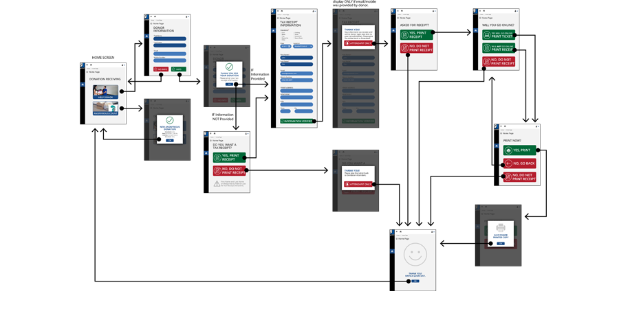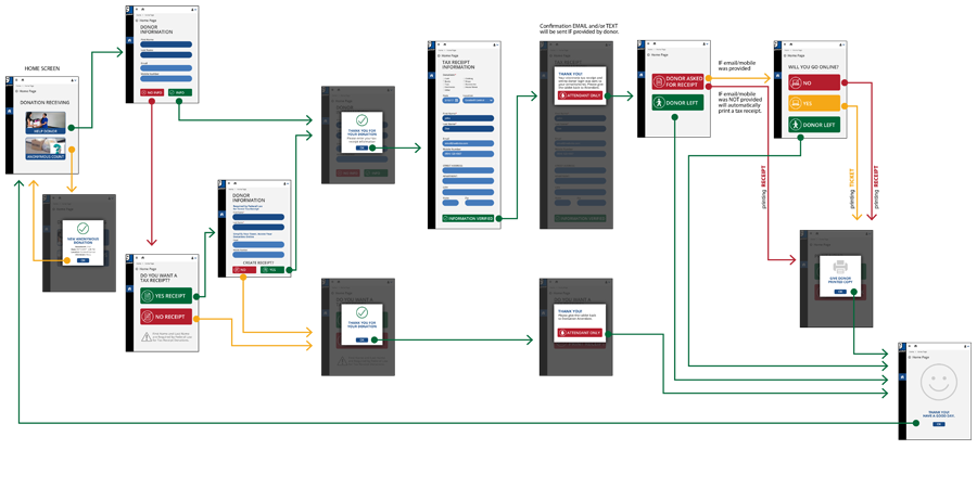 I started to get involved in the project was while doing the first pilot test at a store with real donors. It was a .NET application built totally custom for client’s needs. When I first saw the beta version of the application I knew the UX and UI could be greatly improved. But I was new to this project and I knew they had invested a lot of time and money on this application. Because it was the first time having a real-life test, we quickly started to get a lot of feedbacks from employees, donors, and management. Some good, some bad. Before officially implementing it on other stores, we had to revisit the entire user flow. That was my opening to start putting my skills to add value to the application.